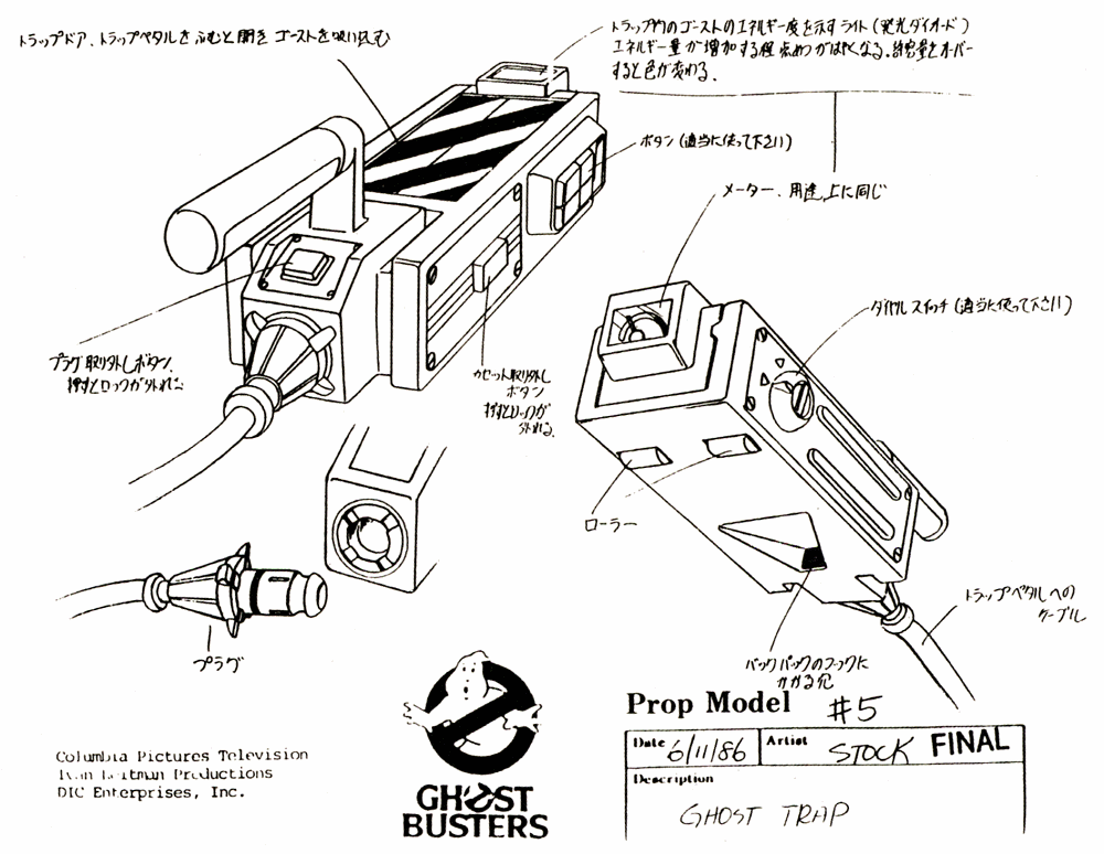 В оригиналния филм от 1984 г. капанът изглежда като кутия с метална повърхност и кърваво червен бутон, която се активира с дистанционно управление. Ловците го използват, като първо поставят капана на земята, след това насочват протонния поток към духа, докато той се стабилизира и започне да „пада“ в капана. В този момент капанът се активира и духът буквално се засмуква вътре, оставяйки ловците да се оттеглят безопасно.
